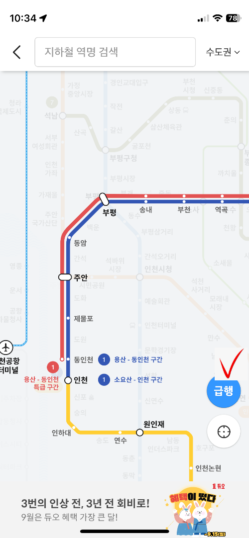 그리고 급행열차의 시간까지도 확인이 가능해요.
