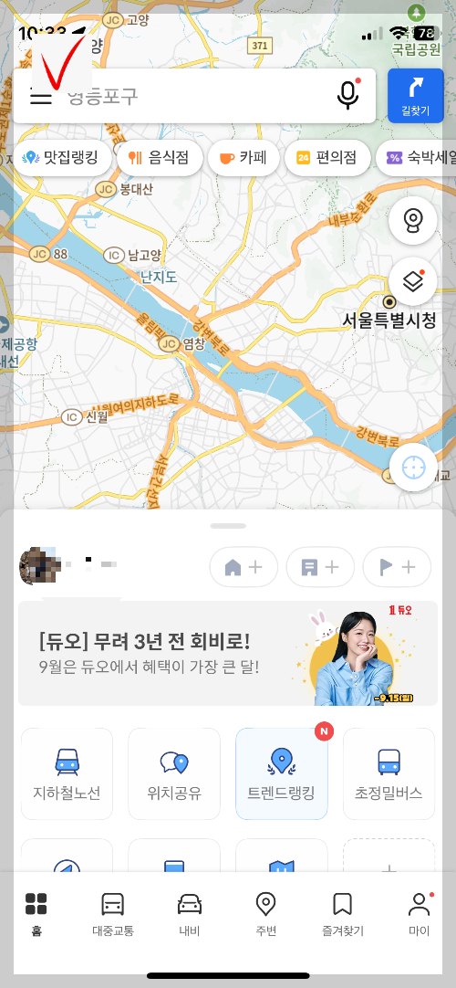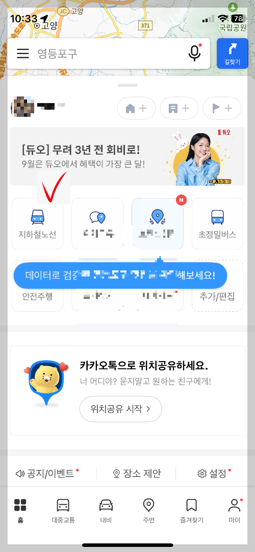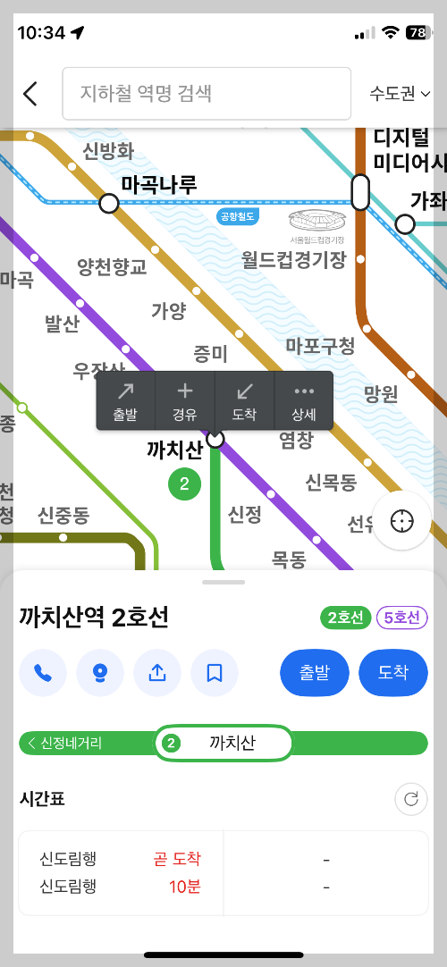 카카오맵 활용하여 지하철 노선과 출도착 시간확인하기