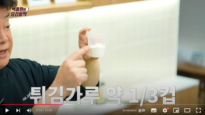 준비한 야채의 양을 보고 튀김가루 양은 조절한다.
