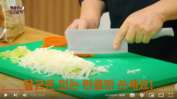 1. 양배추는 두께 0.3cm 로 채 썰어 준비한다.