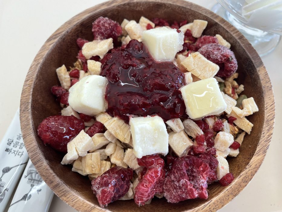 꾸덕한 그릭요거트에 어울리는 토핑을 함께 먹으니 눈과 입이 즐거워지는 시간이었습니다.!그릭요거트와 함께 요거트 아이스크림의 맛도 정말 수준급이었어요.