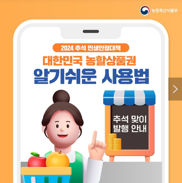 [2024추석민생안정대책] 의 하나인 농할상품권 구매방법은 다음과 같습니다.