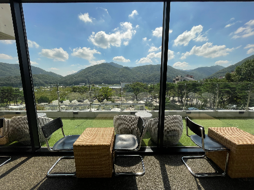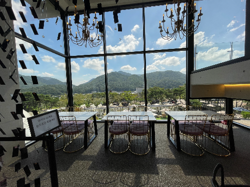 카페 어디에 자리를 잡아도 뻥뚤린 경치로 산과 자연을 감상할 수 있는 경치가 끝내주는 곳이네요.