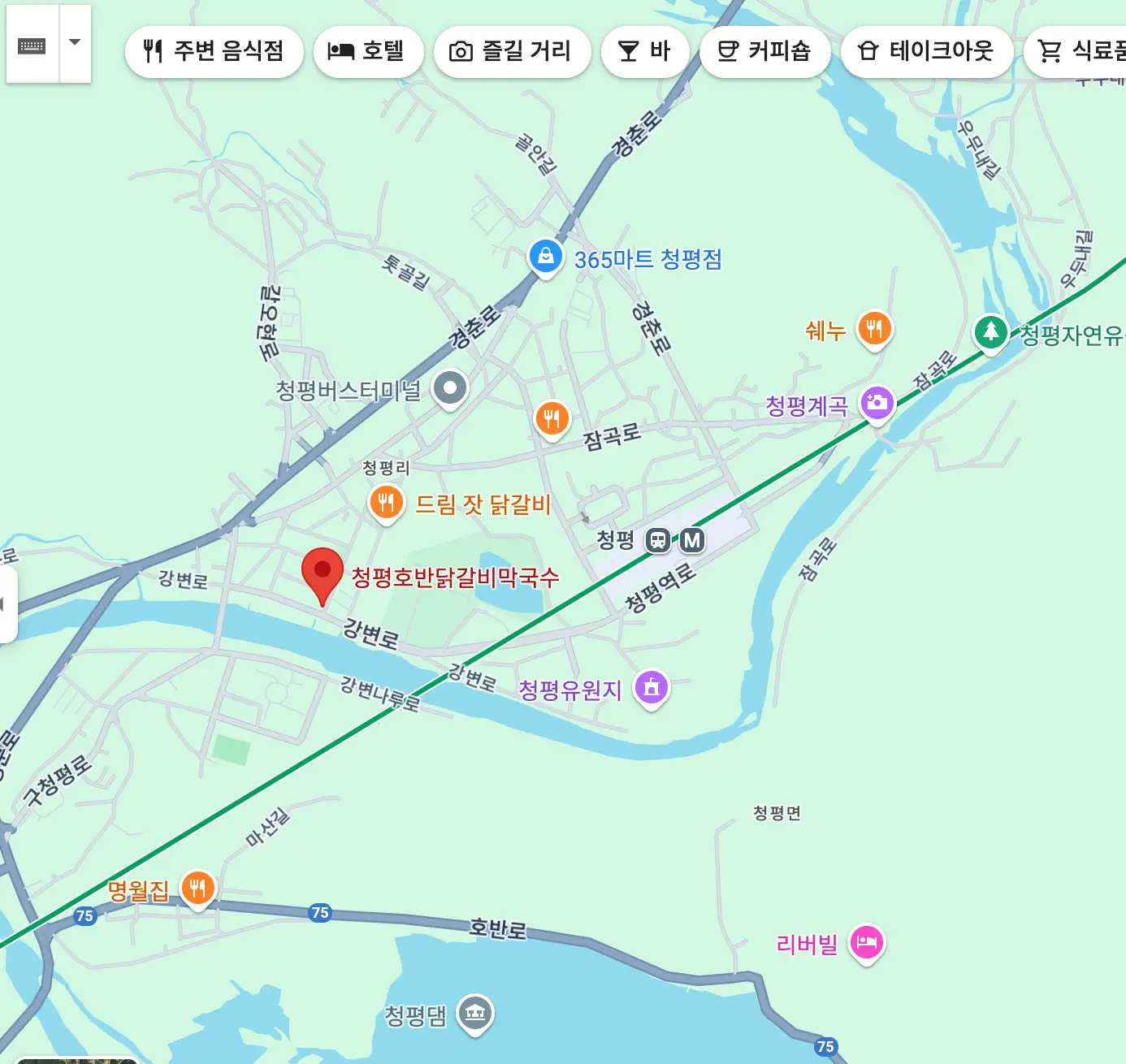 청평호반닭갈비막국수 · 경기도 가평군 청평면 강변로 45-7 KR