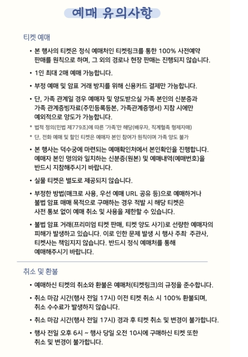- 문의행사문의 콜센터 : 1522-2295 | 티켓문의 : 티켓링크 고객센터 1588-7890