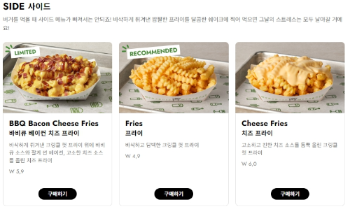 가격대는 한국 다른 버거 프렌차이즈점과 대비해 좀 비싼 편입니다.