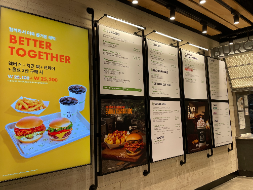 가격대는 한국 다른 버거 프렌차이즈점과 대비해 좀 비싼 편입니다.