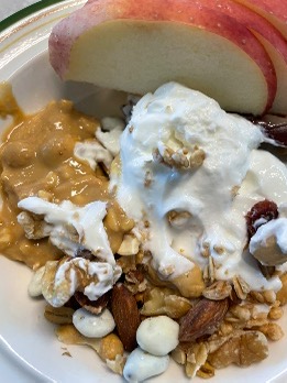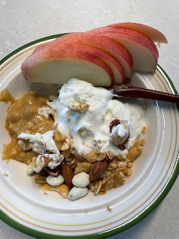 아침으로 먹기 좋은 그릭요거트 & 땅콩버터 & 사과 조합
