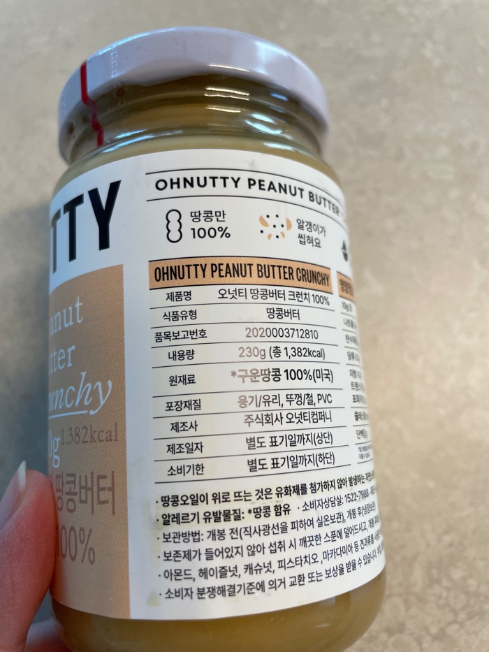 저는 식단관리 중이기도하고, 땅콩버터로 효과를 보려면 첨가물이 없는 100% 땅콩으로 만든 제품을 고르고 싶었어요.