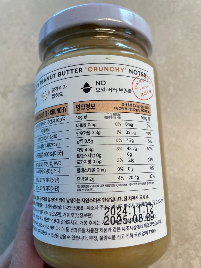 제가 구입해서 먹은 땅콩버터는 크런치 였어요.