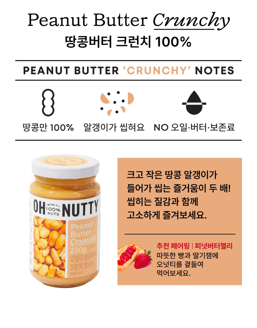 오넛티 땅콩버터 크런치 100%, 80g, 4개 - 땅콩버터잼 | 쿠팡