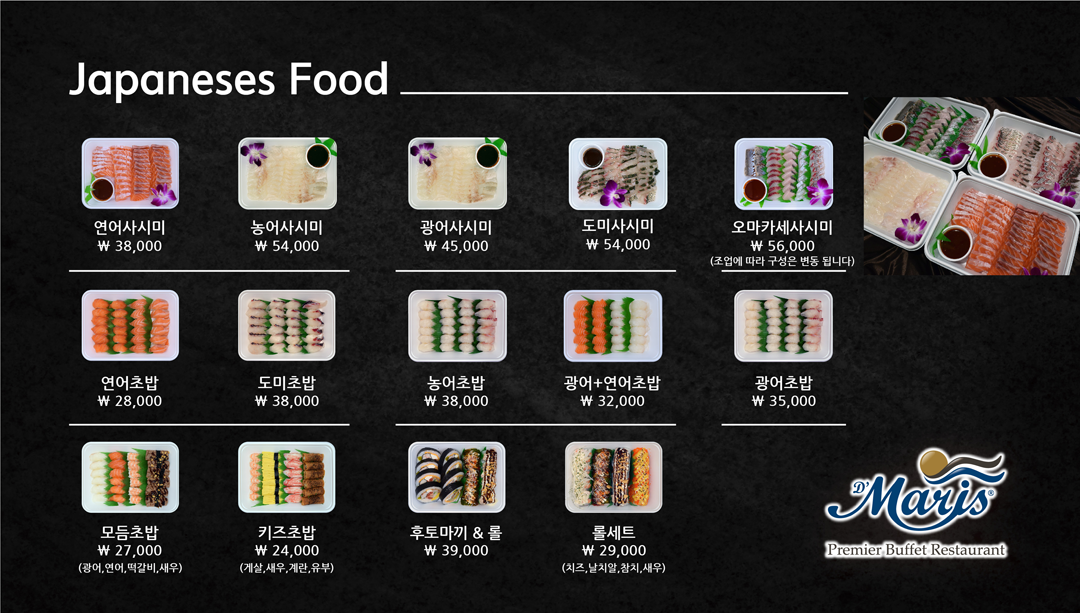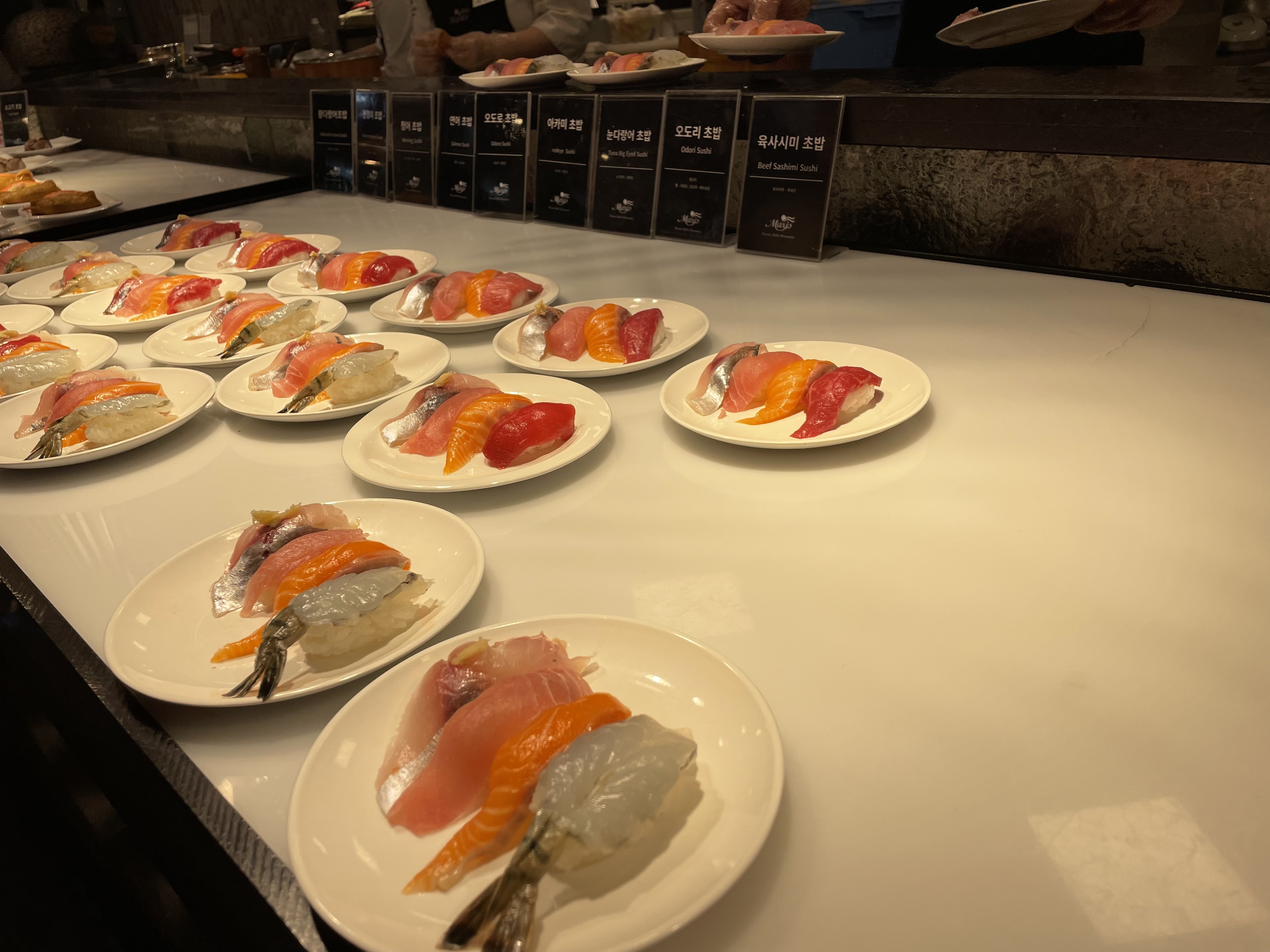 생선회는 다른 뷔페집과 다르게, 접시마다 모둠으로 준비되어 있는 것이 좋았어요.