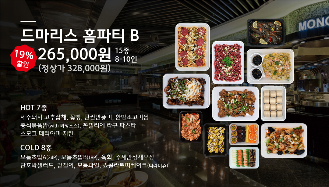 집에서도 픽업 또는 퀵으로 드마리스의 음식을 받아 연말 파티를 할 수 있는데요,