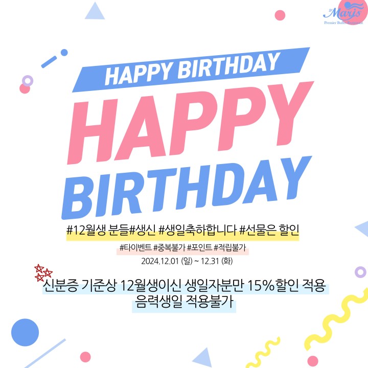 12월에 생일이 있다면 생일자 할인을 받아보세요.