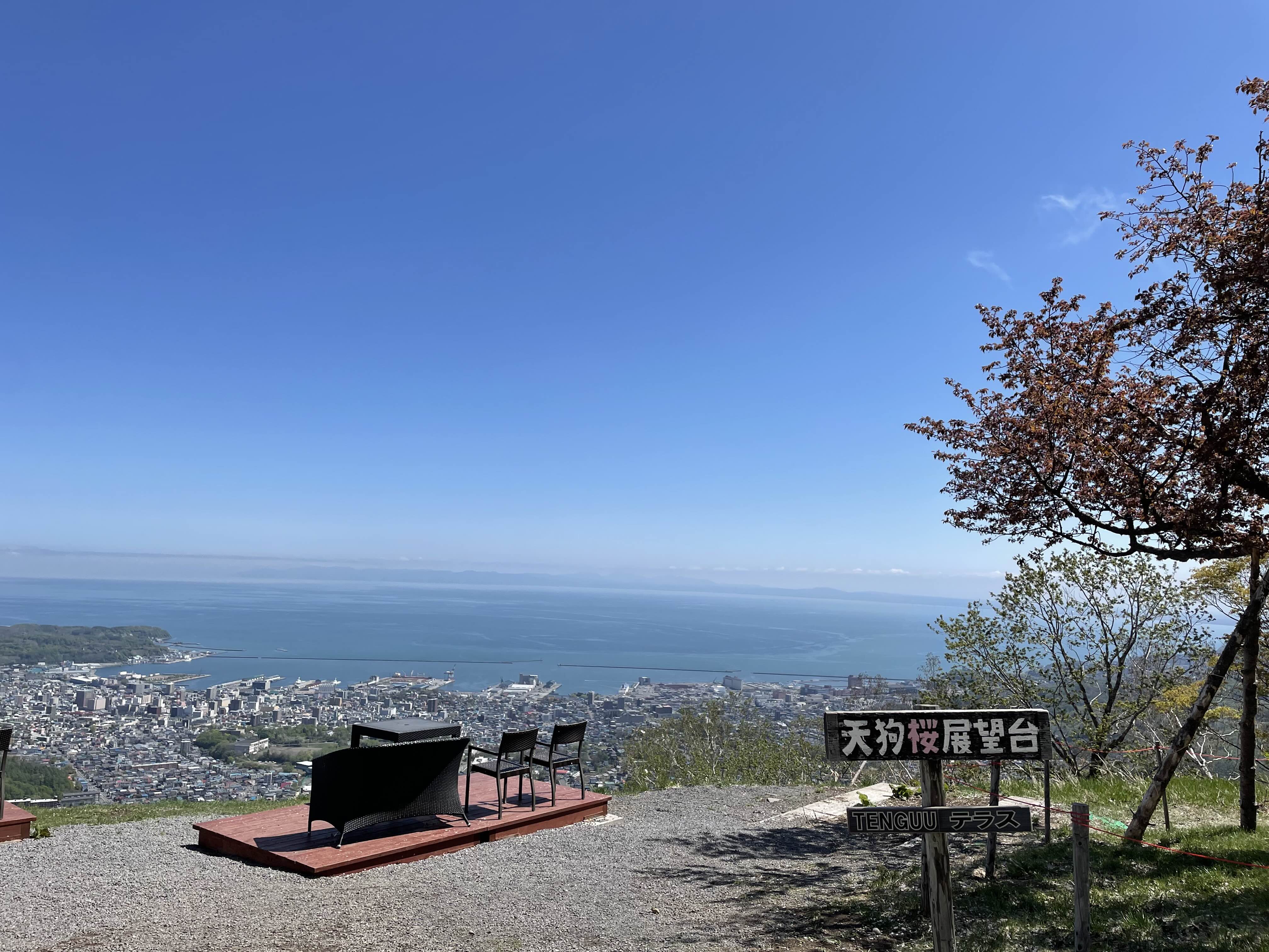 오타루 시내를 걸으면서는 운하를 본 것 외에는 딱히 바다를 바라볼 일이 없었는데, 텐구야마 전망대에 오니 끝없이 펼쳐진 바다를 한눈에 볼 수가 있었습니다. 우리나라에서는 동해, 일본에서는 서해가 되는 바다겠네요.