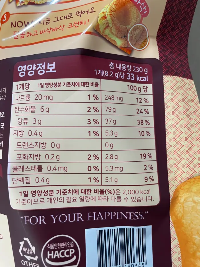 포화지방과 당류가 낮은 가벼운 과자라 관리중일 때도 1개 정도 먹을 수 있겠어요!