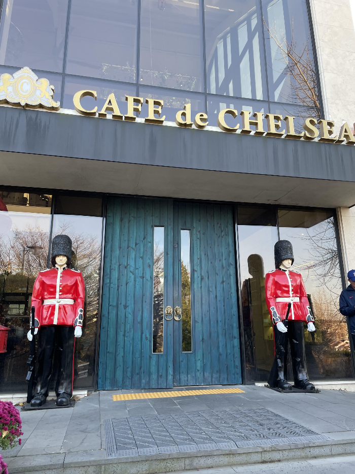 카페 입구에는 영국 궁전에 입장하는 느낌이 드네요!
