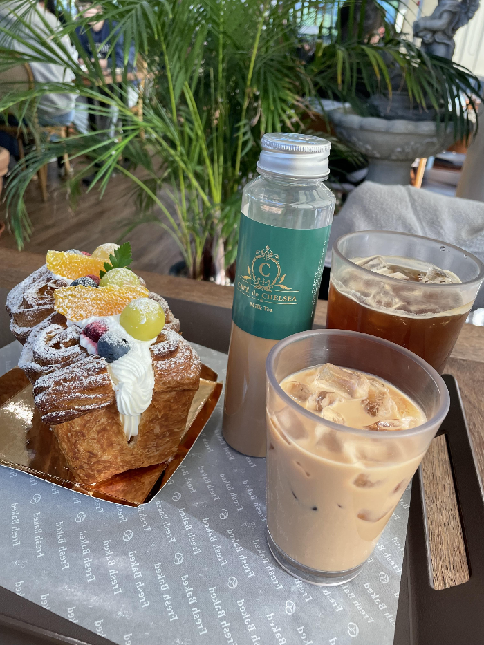 저희는 기본 밀크티와 아메리카노, 그리고 과일 페스츄리를 먹어보았습니다.