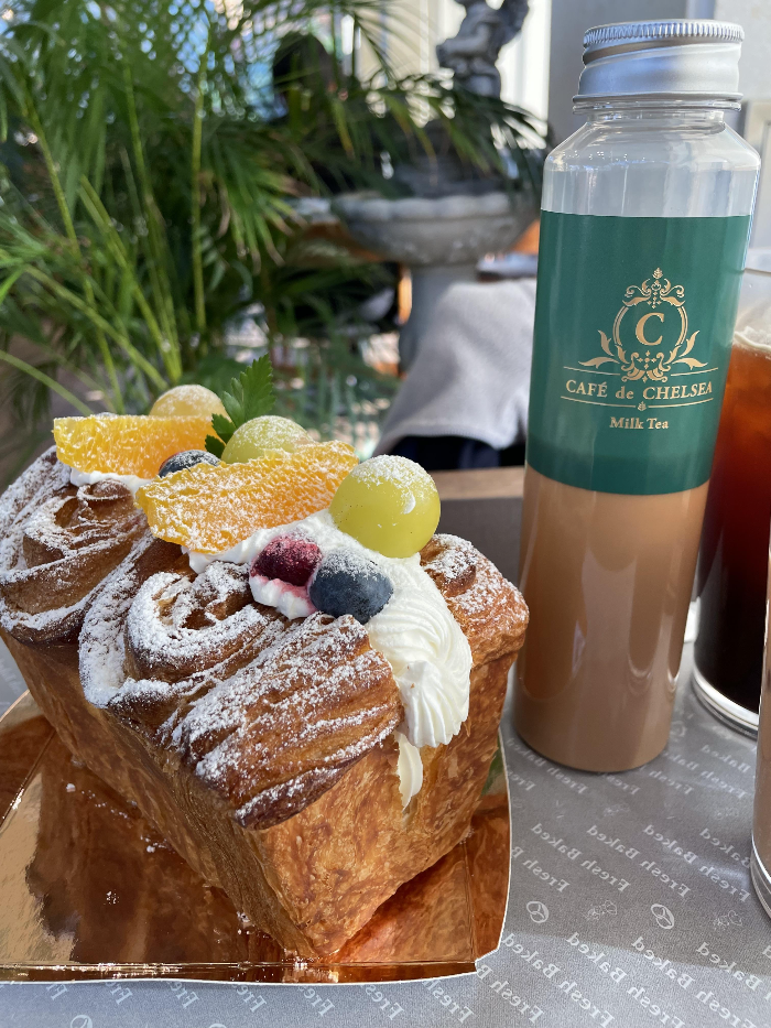 저희는 기본 밀크티와 아메리카노, 그리고 과일 페스츄리를 먹어보았습니다.