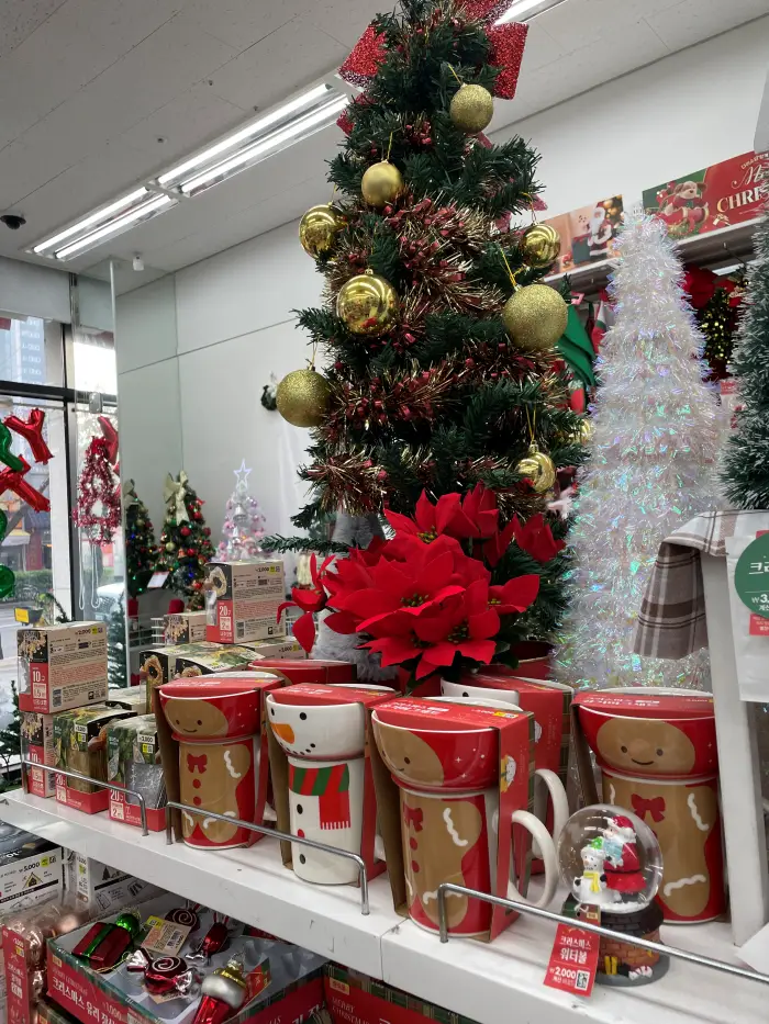 아이가 필요한 물건을 구입하러 갔다가, 입구부터 커다란 트리와 장식이 화려하게 맞이해 주네요.