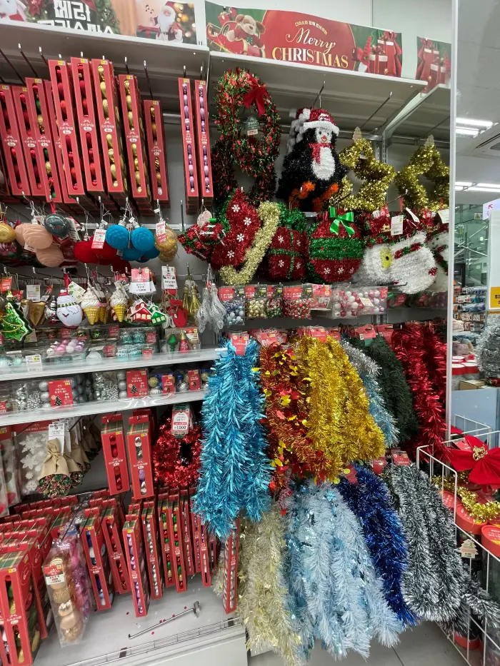 아이가 필요한 물건을 구입하러 갔다가, 입구부터 커다란 트리와 장식이 화려하게 맞이해 주네요.