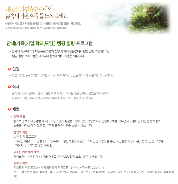 아래와 같이 대둔산자연휴양림에서 주관하는 프로그램들도 있으니,