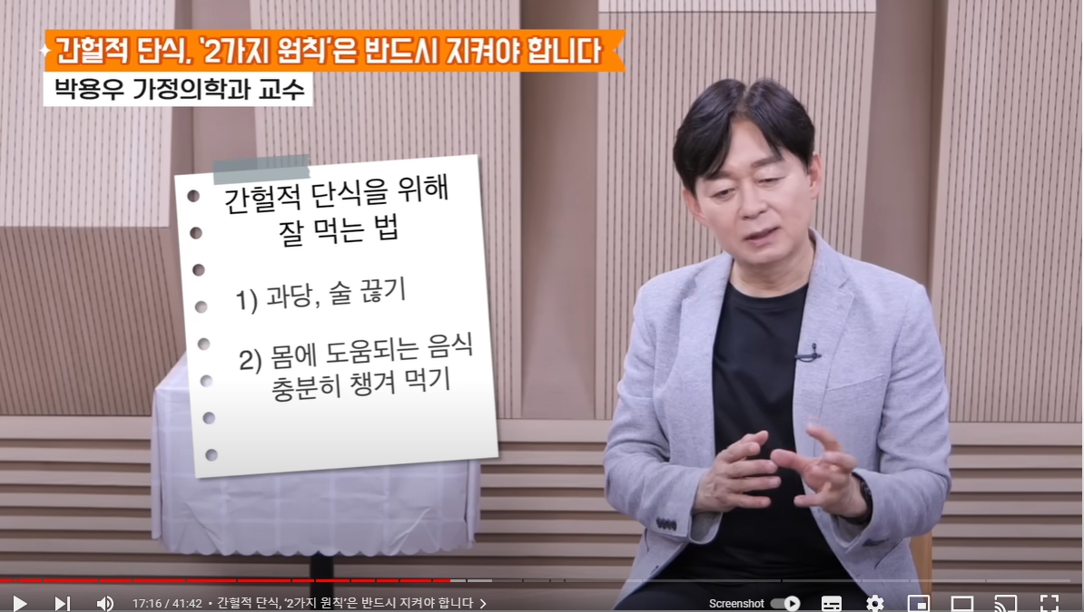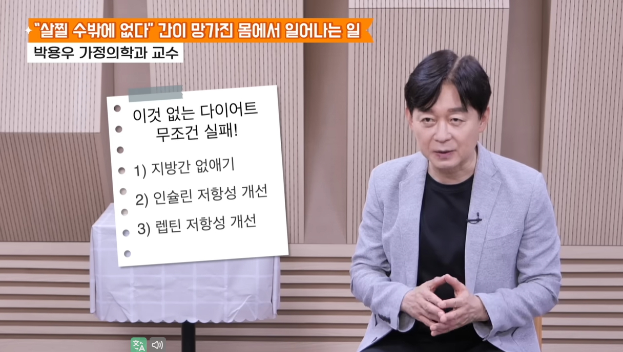 그 지인이 이야기한 박용우 교수님이 나와서 다이어트와 건강에 대한 이야기를 하고 있었어요.
